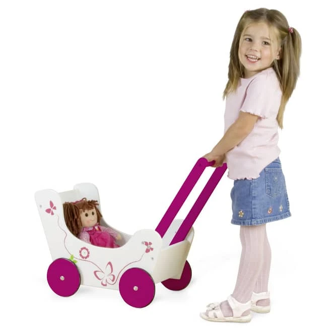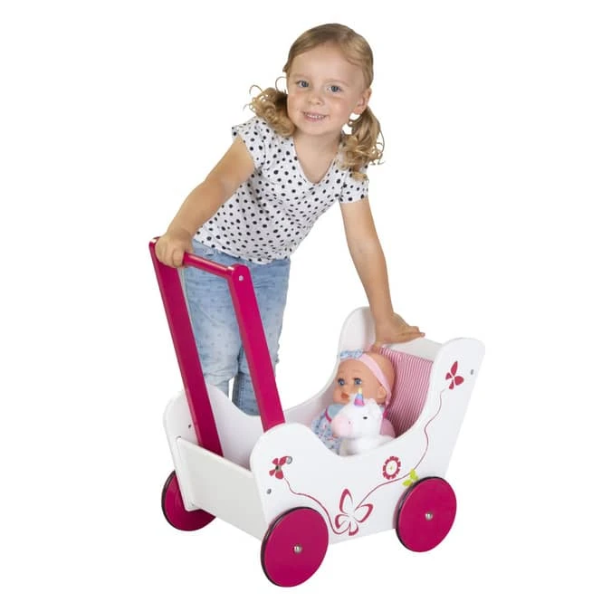 Holz Puppenwagen mit Schmetterlingsmotiv