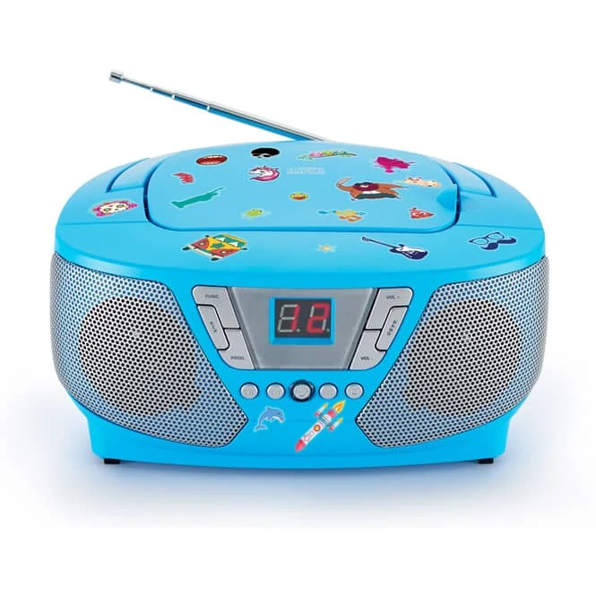 - Lieferumfang: 1 tragbarer CD-Player mit Radio, 5 Stickerbogen, 1 Netzkabel