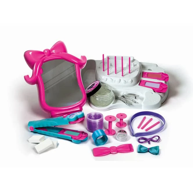 Dieser Schönheitssalon verfügt über einen großen Spiegel, eine Haar-Farbpalette und bunte Kreidetäfelchen, um Farben in allen Tönen des Regenbogens zu erschaffen. Beinhaltet Clips und eine Accessoire-Ablage.