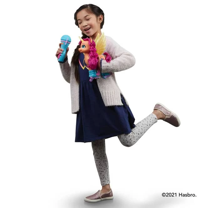 Sing- und Skatespaß Sunny Starscout ist eine interaktive Ponyfigur, die von den Kindern selbst kontrolliert werden kann. Sie enthält ein kabelloses Mikrofon, das zum Mitsingen und als Fernsteuerung benutzt werden kann. Mit den Knöpfen auf dem Mikrofon kann die Figur vorwärts oder in Kreisen bewegt werden. Sie bewegt sich sogar, wenn die Fernsteuerung geschüttelt wird! Sunny Starscout wackelt mit dem Kopf und den Flügeln beim Skaten und summt einen Teil ihres Songs „Gonna Be My Day“.