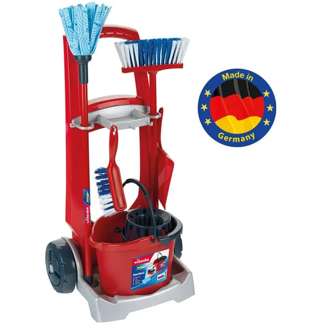 - Lieferumfang: Besenwagen mit Stielbesen, Handbesen, Handschaufel, Wischmop, Eimer und Auswringaufsatz