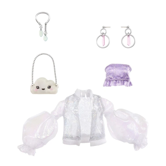 Jenseits der Wellen, unter der Brandung, im tiefen Blau… folge den fabelhaften Flossen der Mermaze Mermaidz™, um etwas Erstaunliches zu entdecken! Kishiko hat wunderschönes, hochwertiges rosa und lila Haar, das zu französischen Zöpfen, mehreren Pferdeschwänzen und einem kawaii Einhorn-Horn-Dutt gestylt ist. Sie hat wunderschöne Glasaugen und echte Wimpern sowie ein Fantasie-Make-up mit Dutzenden von kleinen Sternen. Kishiko trägt ein lila Rüschenoberteil und eine schillernde Bomberjacke mit Ballonärmeln. Dazu trägt sie passende Ohrringe und eine Halskette aus Kunstkristall sowie eine süße Wolken-Tasche.