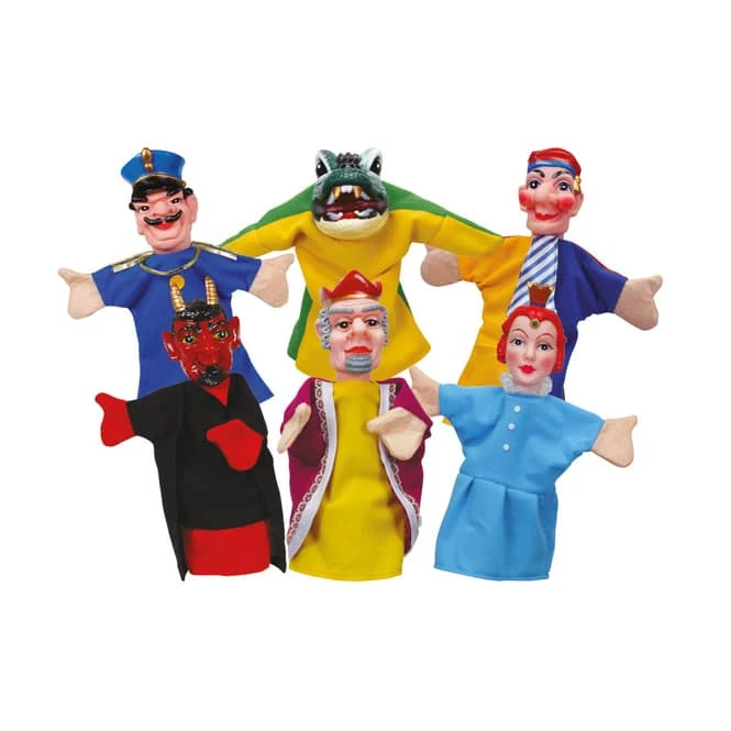Mit den sechs verschiedenen Handpuppen lässt sich ein wunderbares Puppentheater veranstalten.