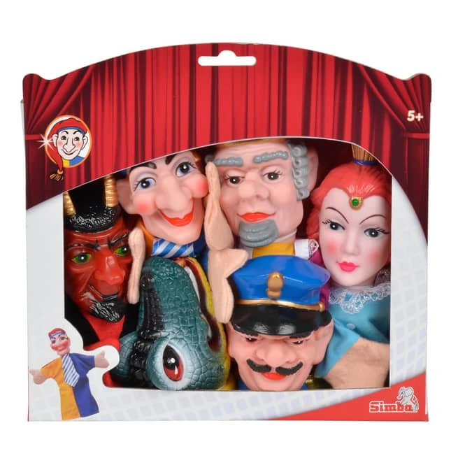 - Lieferumfang: Kasperl, Polizist, König, Teufel, Krokodil, Prinzessin