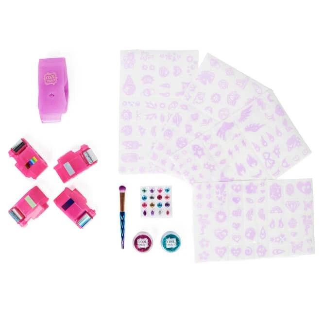 Mädchen lieben es, sich mit Tattoos zu schmücken. Je schimmernder und bunter desto besser. Mit dem Shimmer Me Tattoo Studio von Cool Maker können sie individuelle Motive zusammenstellen und diese ganz einfach mit verschiedenen Metallicfolien, Glitzer und Schmucksteinen gestalten. Einfach die selbstklebenden Motive auf die gewünschte Stelle auf der Haut anbringen, die Schutzfolie abziehen und eine Folienkartusche in den Abroller einlegen und damit über den Aufkleber rollen. Nun noch etwas Glitzer und funkelnde Steine, fertig ist der Look. Selbst mehrmaliges Duschen übersteht das Tattoo, das sich problemlos abziehen lässt. Ob an Armen, Beinen oder Händen, die Tattoos sehen toll aus und sind dermatologisch getestet. Zusammen mit anderen Produkten der Cool Maker Linie können sich Mädchen von Kopf bis Fuß individuell stylen – ganz einfach und immer wieder neu.