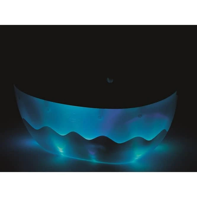 Zielen, Drücken uuuuund… GETROFFEN! Der Brother ist ordentlich nass geworden. Mit so einer Badeente kann man eine prima Wasserschlacht veranstalten. Die kann in allen möglichen Positionen am Badewannenrand positioniert werden; genauso wie das herzige Kissen. Die Wanne ist im Inneren Wasserblau und außen Weiß mit eingearbeiteter Wellenform. Wird der Lichtschalter neben der Brause gedrückt, leuchtet die Außenhülle der Badewanne abwechselnd in verschiedenen Farben.